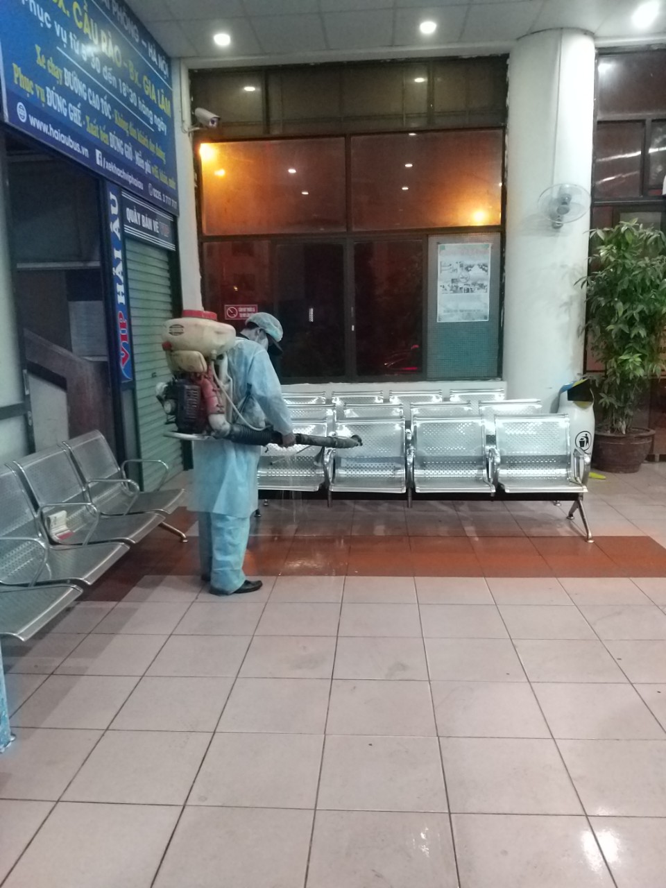 Nghiêm túc triển khai và thực hiện kế hoạch ứng phó đối với dịch bệnh viêm đường hô hấp cấp do chủng virut Corona mới, ngày 5/2/2020, Công ty CP bến xe Hải Phòng đã mời Trung tâm y tế dự phòng Thành Phố tiến hành phun thuốc diệt khuẩn Cloramin B tại các Bến xe của Công ty.